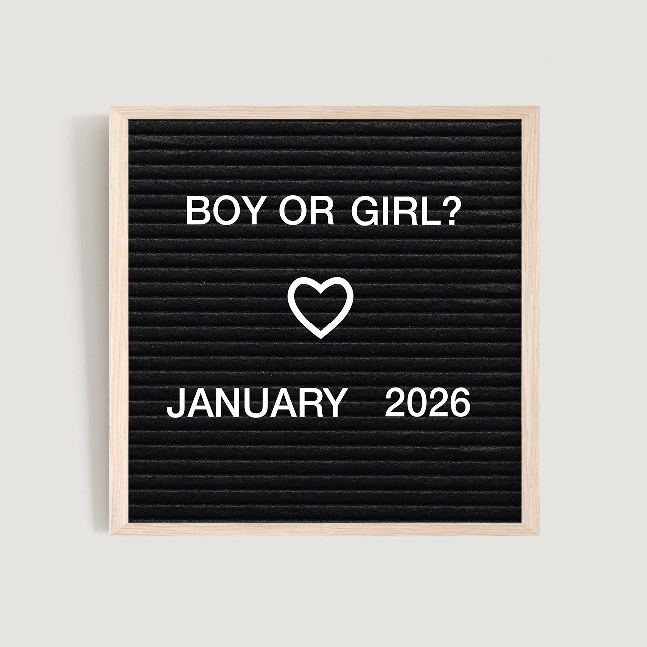 Unveil the exciting news with our customisable Gender Reveal Black Blackboard Wall Art Print. This personalised digital download is the perfect way to share whether you're having a little boy or girl. Customise it with your due date and any words you choose to create a unique and heartfelt announcement.