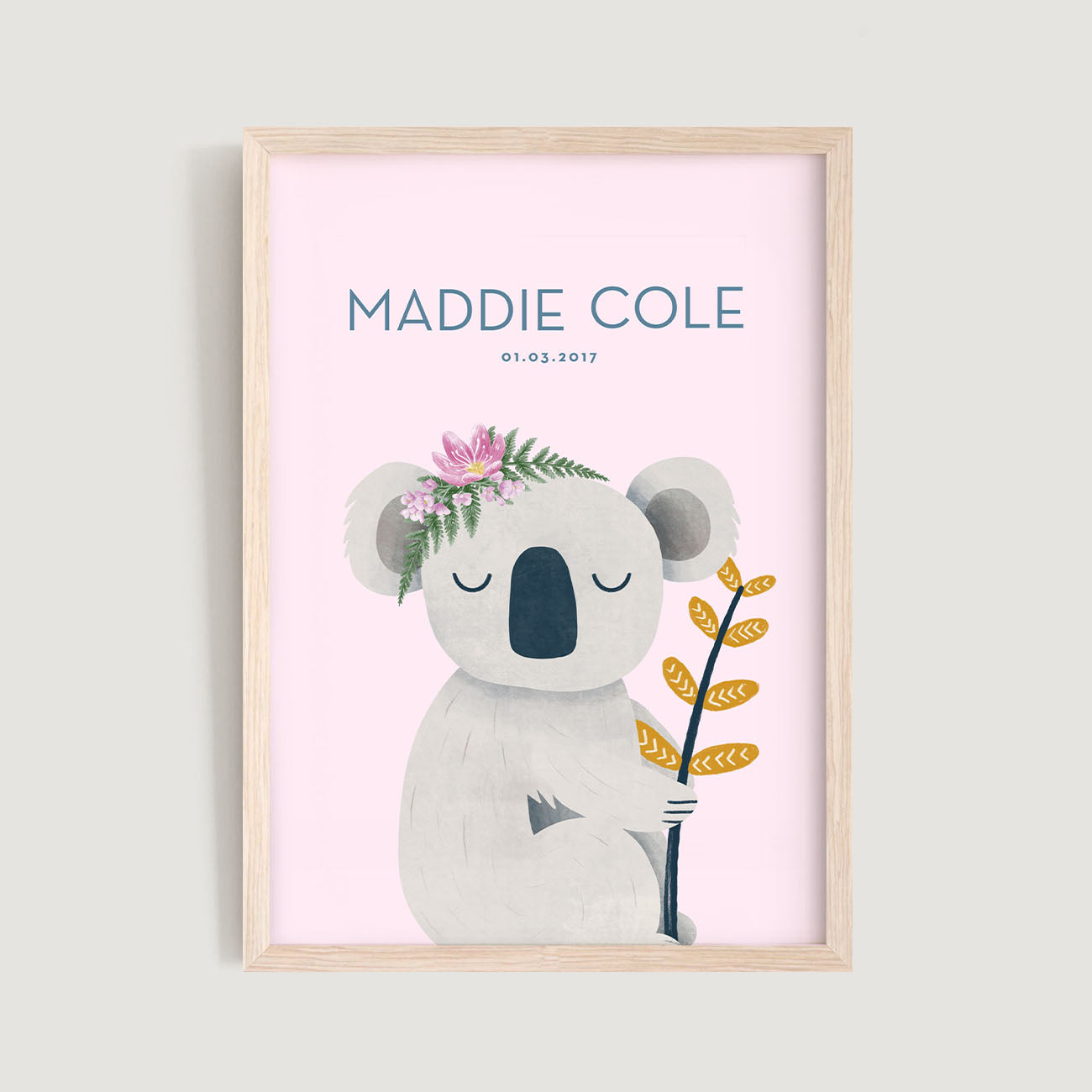 Whimsical Koala Pink Personalised Nursery Birth Print